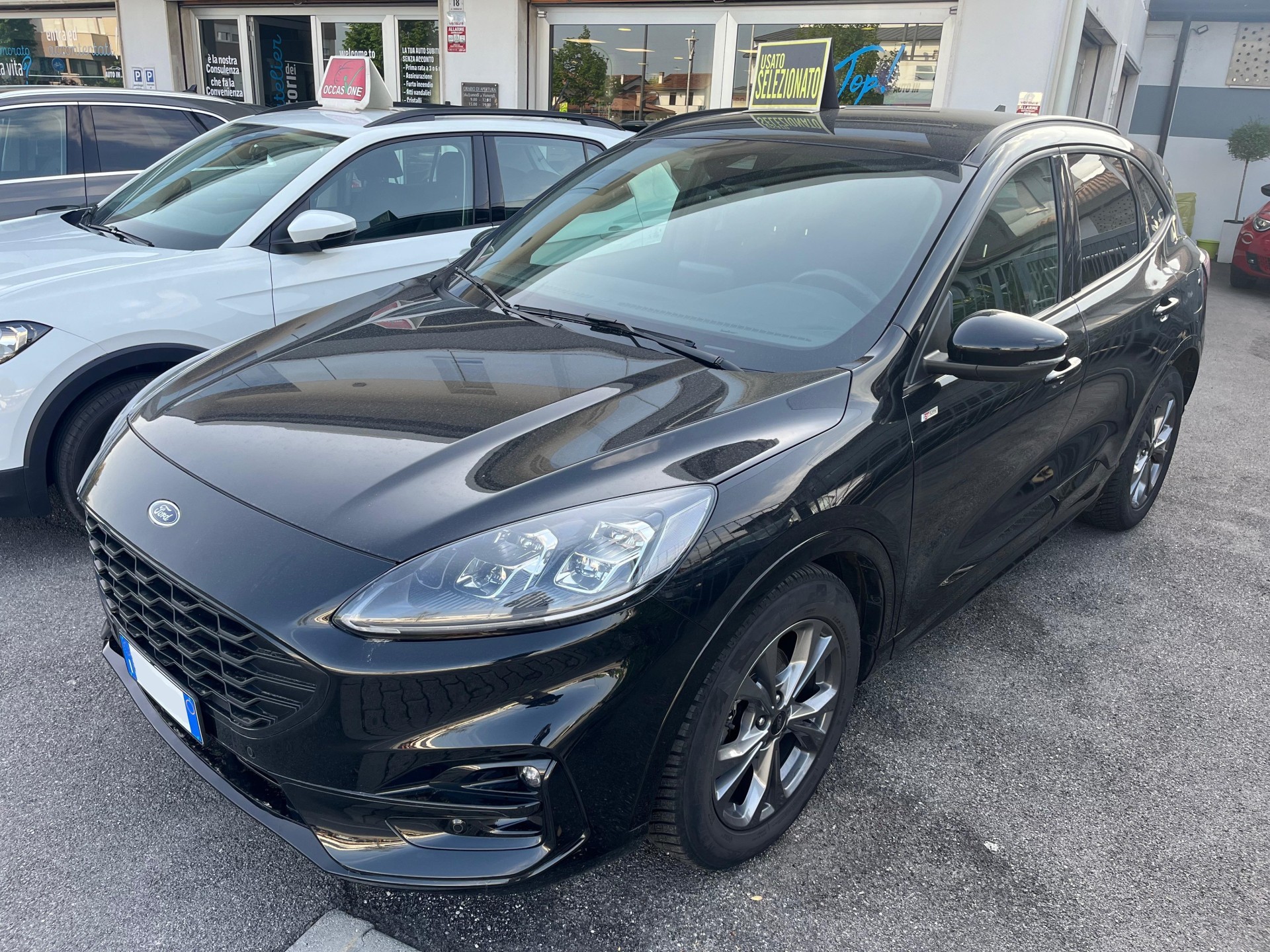 Cerchi in lega bruniti da 18 con gomme M+S - bagagliaio elettronico - fendinebbia - telecamera posteriore - sensori posteriori e anteriori - finestrini anteriori e posteriori elettrici - regolazione e chiusura specchietti elettrica - barre longitudinali - finestrini oscurati - smart key - sedili regolabili in altezza - regolazione lombare - luci automatiche led - volante multifunzione - cockpit digitale - sistema mantenimento corsia - assistente anticollisione - cruise control e limitatore di velocità - bluetooth - schermo touch - navigatore - ford pass connect - app connect - clima automatico bizona - presa USB/12V - bracciolo in pelle - start&stop - varie mod di guida (eco/sport/normal/bassa aderenza/sterrato/neve/sabbia) - freno a mano elettronico con auto hold - modalità park - ruotino